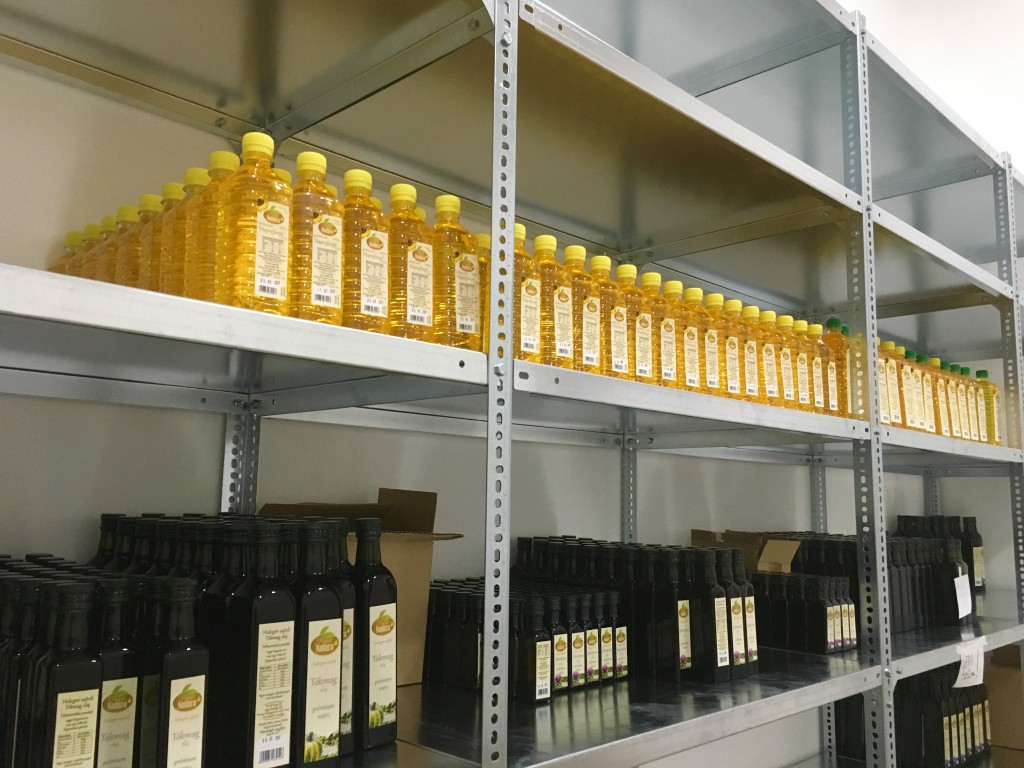 A sajtolás során nagy gondossággal és odafigyelés mellett történik az olajok kinyerése. Sajtolás után ülepítjük, és szűrjük majd palackozzuk az olajokat. Ezek után kerülnek az üzletek polcaira és az Önök asztalára.